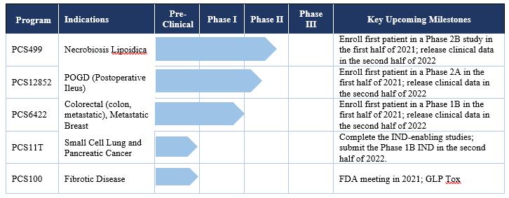 Processa Pharmaceuticals, Inc. is a clinical-stage biopharmaceutical company focused on the development of drug products that are intended to provide treatment for and improve the survival and/or quality of life of patients who have a high unmet medical need condition or who have no alternative treatment. Our most advanced product candidate, PCS499, is an oral tablet that is a deuterated analog of one of the major metabolites of pentoxifylline (PTX or Trental®). We have completed the patient portion of our Phase 2A trial for PCS499 and are in the process of closing the trial, and we plan to begin recruiting for a Phase 2B trial in 2021. We also have four newly licensed drugs (PCS12852, PCS6422, PCS11T and PCS100) and will begin developing these products once adequate funding has been obtained.