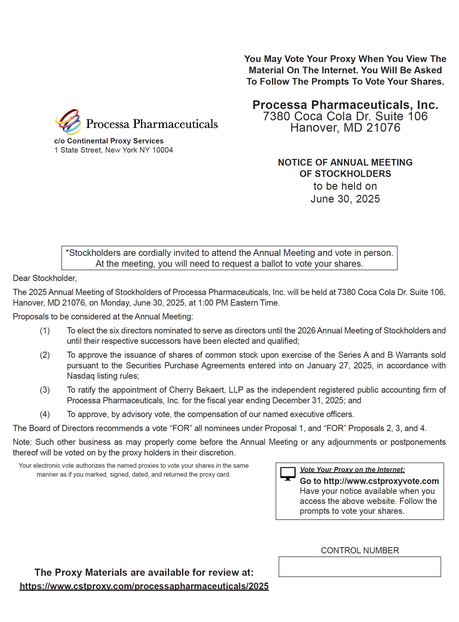 Processa Pharmaceuticals, Inc.